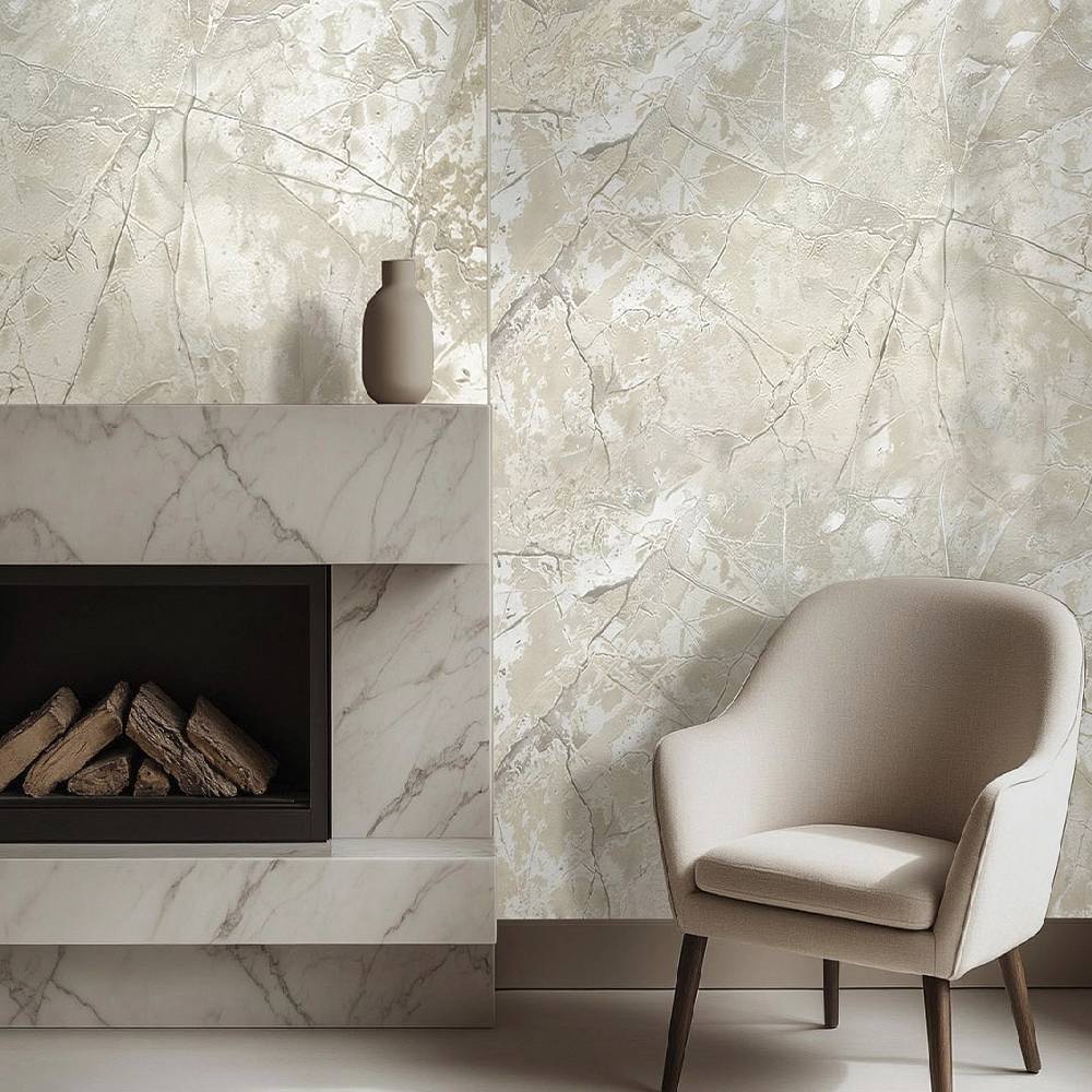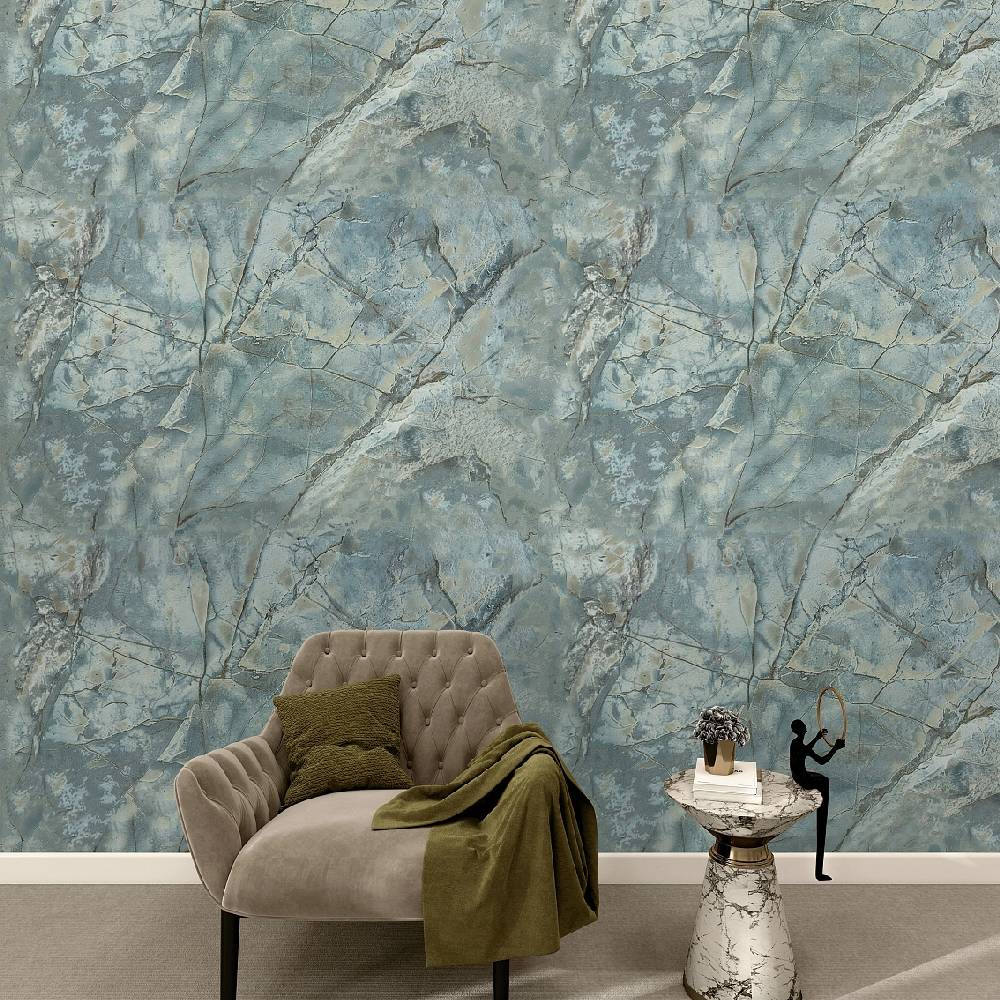 мотивом выступают обои под камень в стиле лофт.